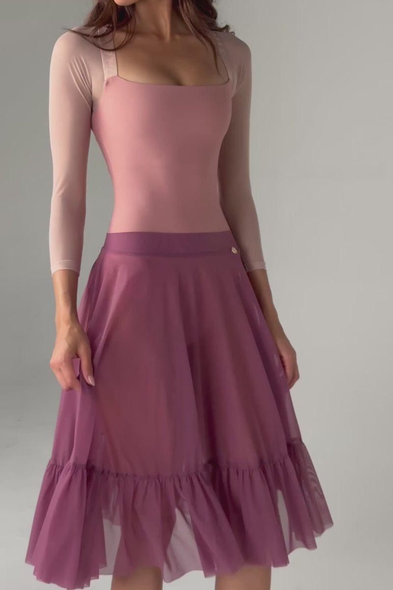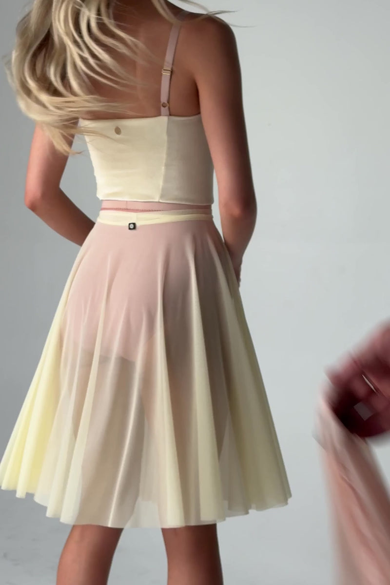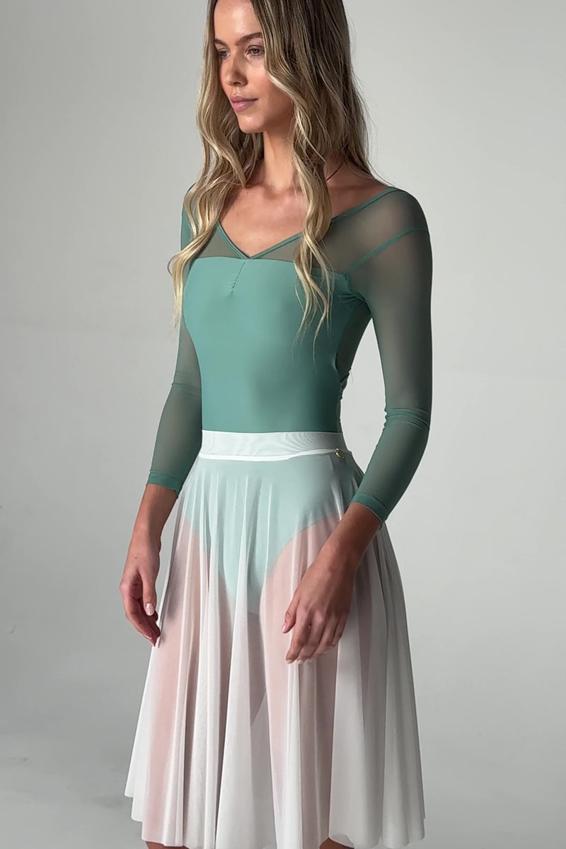 A full circle, pull-on skirt that is floaty, ethereal and perfect for rehearsal. Made from SUPRABLIME™, our soft featherweight Italian-made stretch mesh. JULIETA has an elegant long line with a smooth waistband for a slimming effect on the waist or hips.