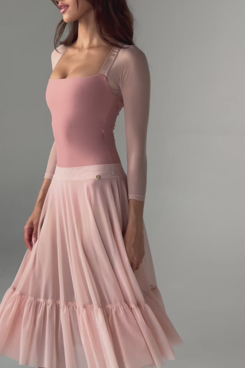 フルサークルのプルオンスカートで、ふんわりとした軽やかなデザインがリハーサルに最適です。イタリア製のソフトなフェザーウェイトストレッチメッシュ、SUPRABLIME™を使用しています。JULIETAはエレガントなロングラインと滑らかなウエストバンドで、ウエストやヒップをスリムに見せる効果があります。