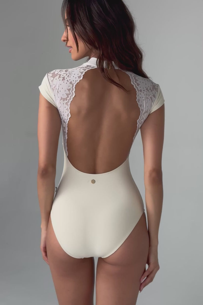 TATIANA Leotard with cute cap sleeves, dramatic velvet collar & stunning lace back panels - with all the beautiful signature BODILE details, including a gold butterfly clasp at the back of the neck. Featuring our cutting edge LEOPREME™ fabric.