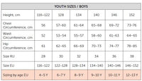 レオタードのサイズ選びは、ガース(片方の肩から股下を通って一周した長さ)が、とても重要となります。