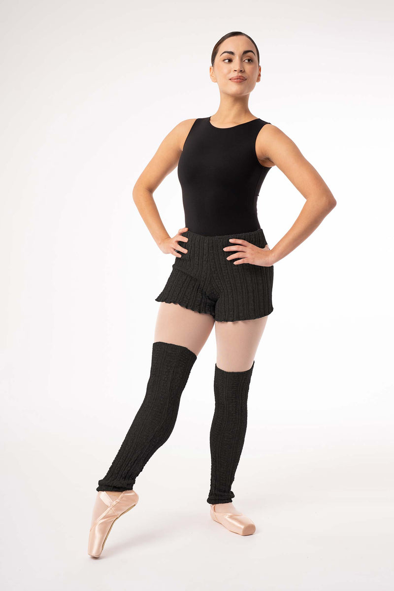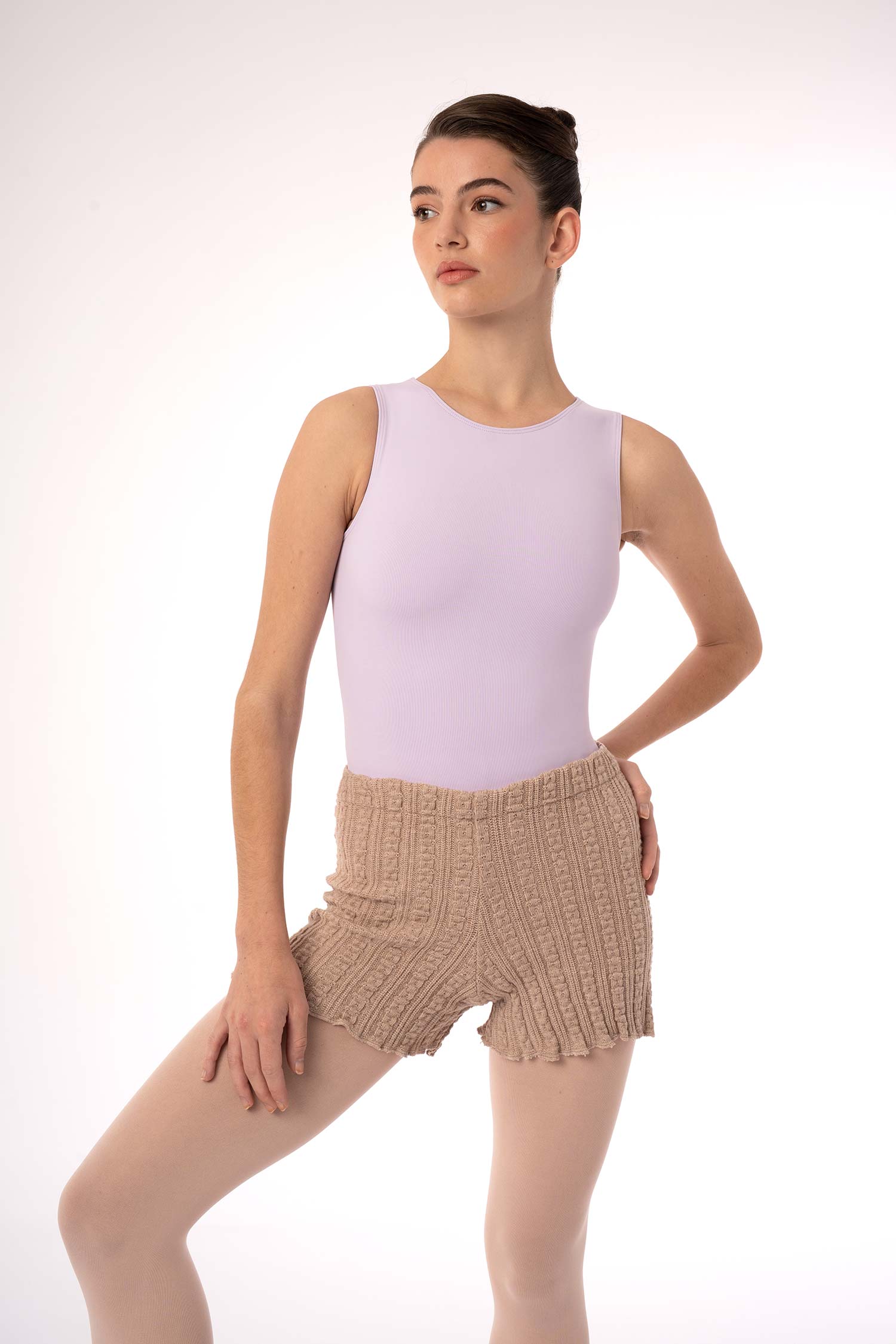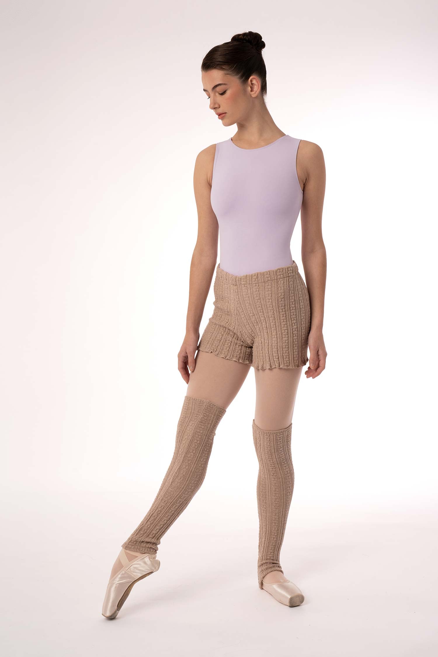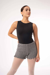 ツイストステッチで編まれたショートパンツです。ウエスト部分は伸縮性のあるゴム仕様で、快適な履き心地を実現します。柔らかく暖かな素材で、肌寒い時期のレッスンやウォームアップにぴったりです。