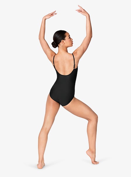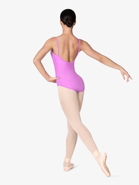 Classic understated camisole leotard pairs easily with your favorite skirt. This streamlined leotard offers clean lines and a simple silhouette for a no fuss class wear look.