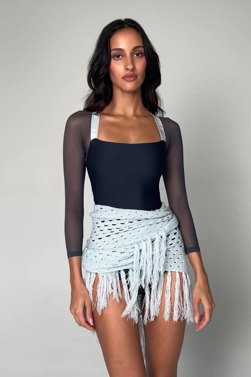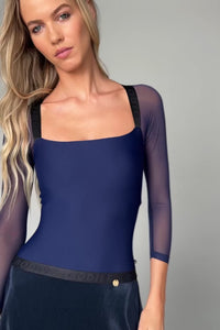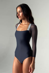 A dramatic square cut neckline and signature BODILE details, including a gold butterfly clasp at the back of the neck, light-as-air SUPRABLIME™ mesh inserts and sleeves and featuring our cutting edge LEOPREME™ fabric and BODILE branded elastic.