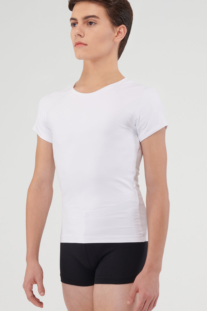 Discover our men's microfiber T-shirt, combining comfort, style, and performance. Designed to complement every movement of dancers, this short-sleeved T-shirt features a classic round neckline and a modern slim fit. With its polished design, it also serves as a stylish and functional uniform.
