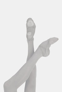 足裏のバンチング(しわやたるみ)を防ぐフラットステッチプリーツが施され、つま先や足裏のフィット感を高めています。ローバンプデザインにより、足のアーチを美しく引き立て、ストレッチキャンバス素材がダンサーの足を包み込み、スリムでプロフェッショナルな印象を与えます。