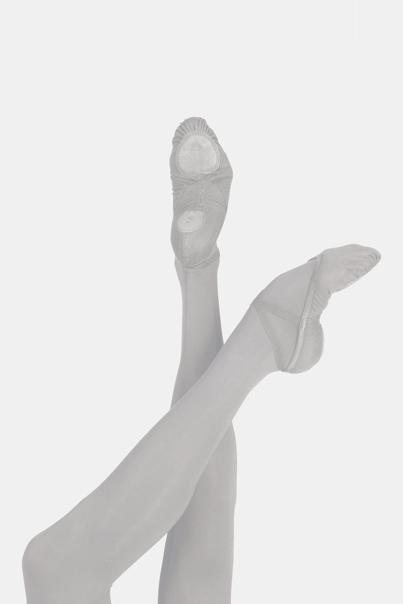 Split-sole stretch canvas ballet shoe. Full stretch canvas is handmade and machine stitched. No drawstring binding, which provides unsurpassed comfort and flexibility. This premium shoe also offers flat stitch pleats that prevent bunching and bulging under the toes and the sole of the foot. Lower vamp shows off the arch of the foot while the stretch canvas material will hug the dancer’s foot and provide a sleek and professional look.