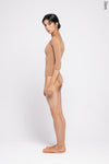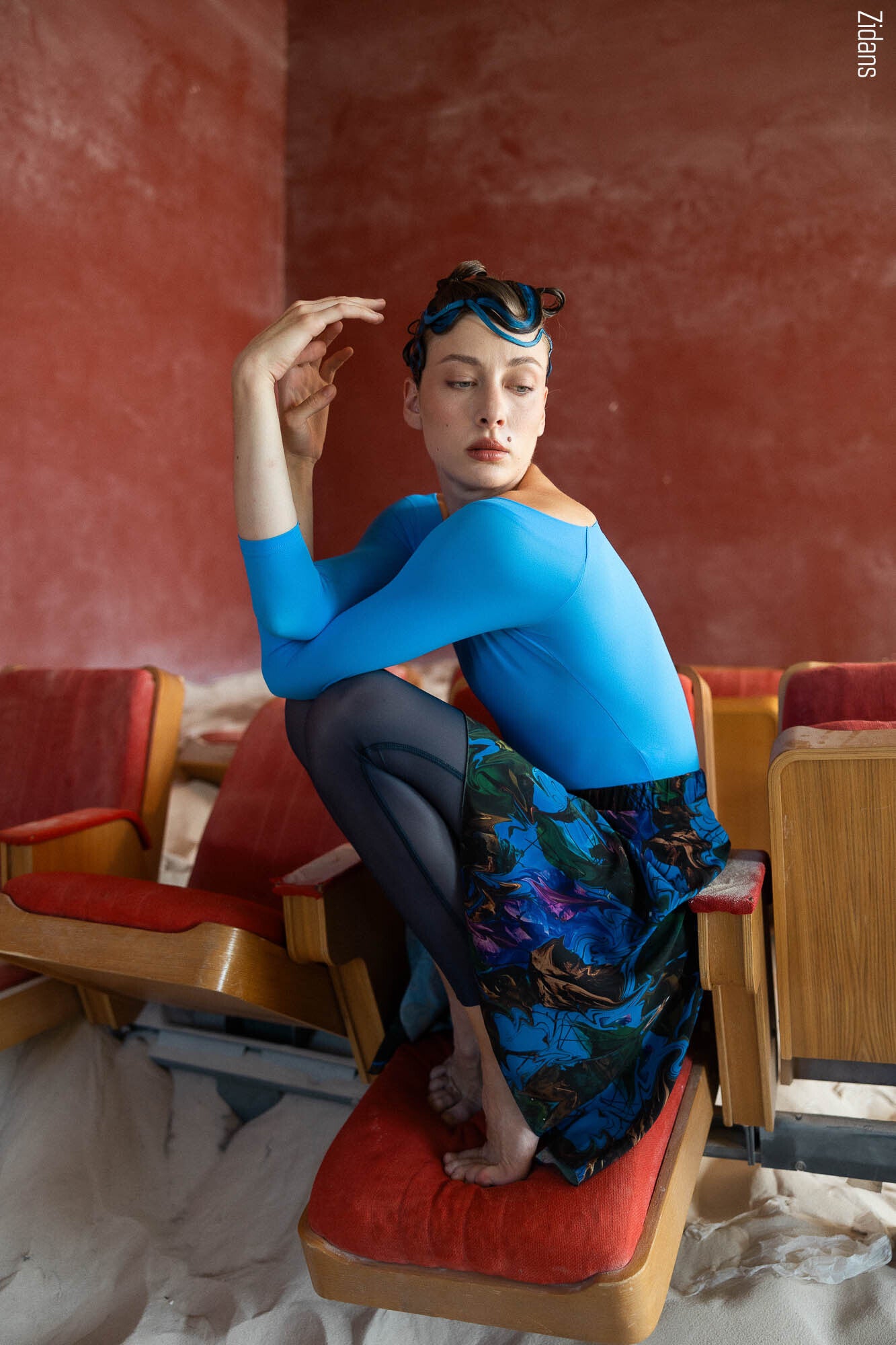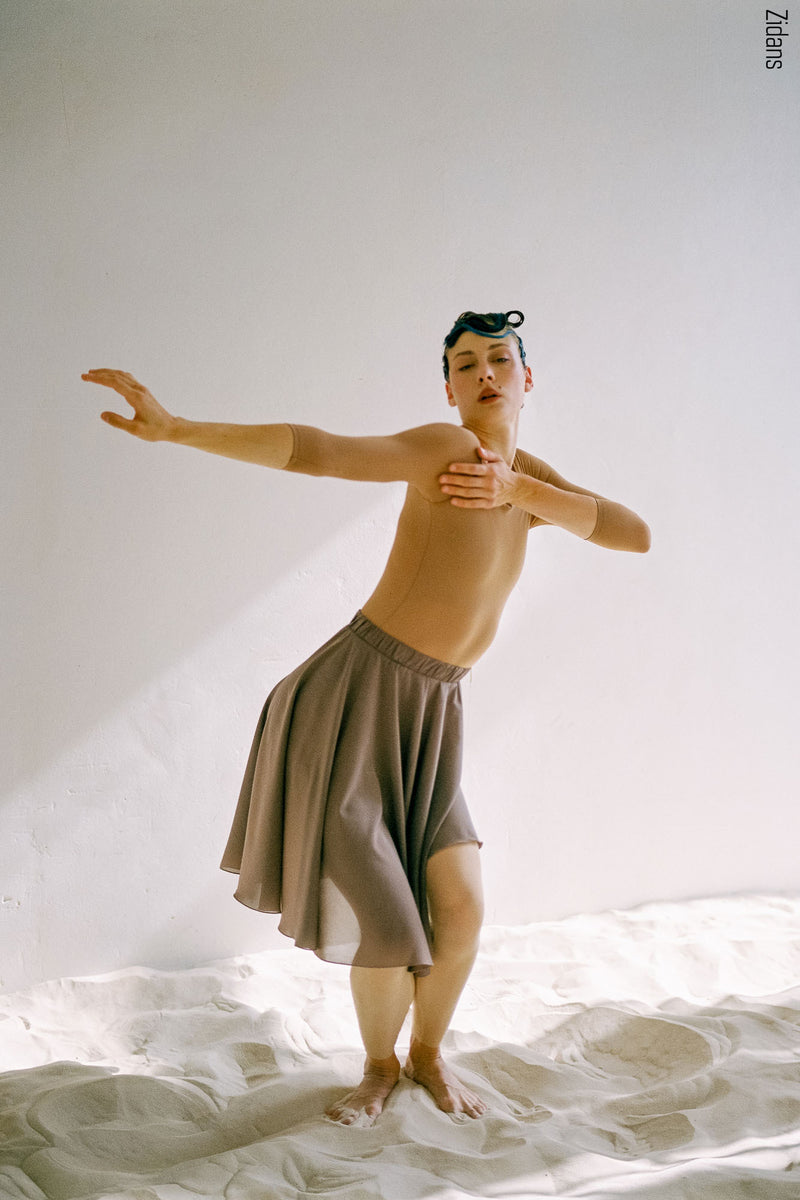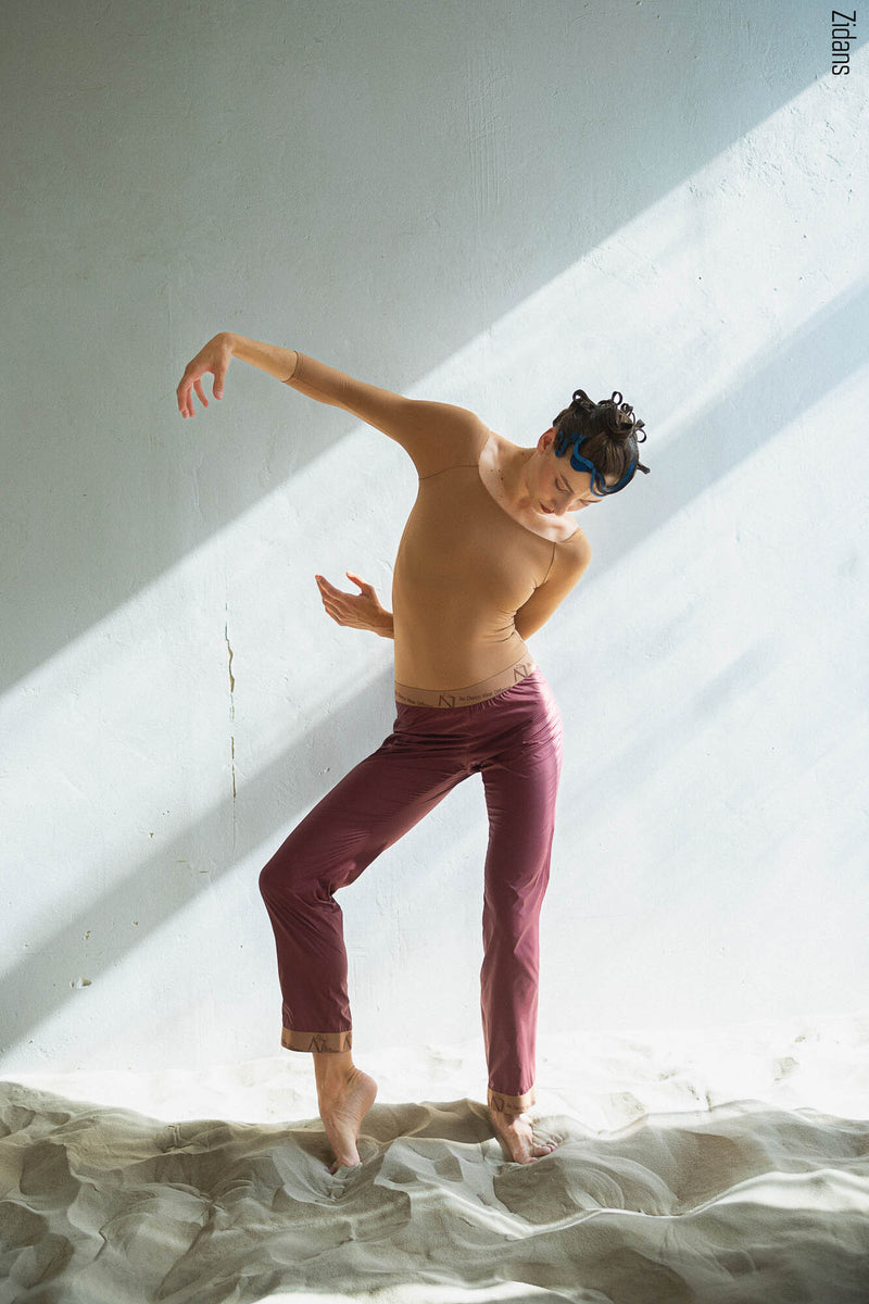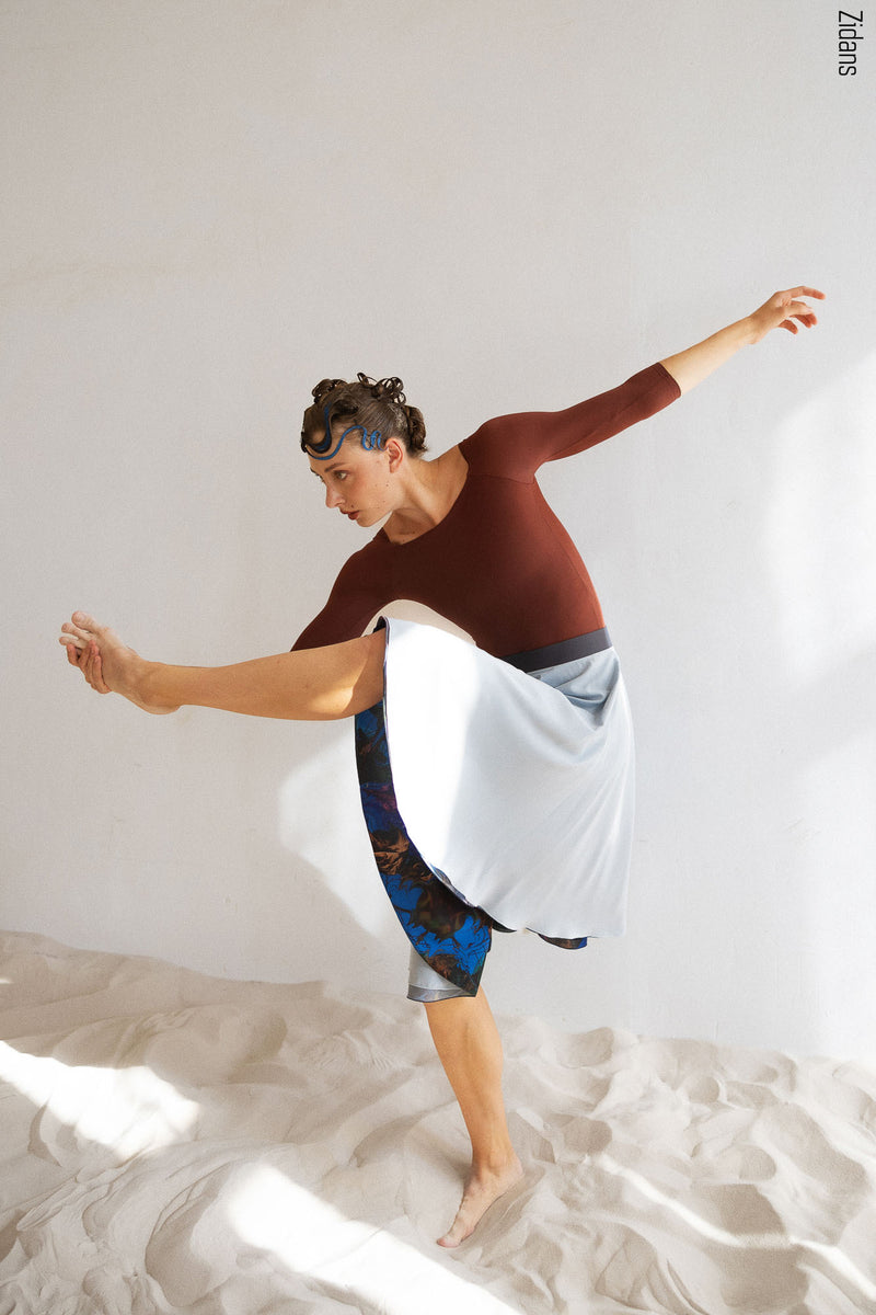 Design. Brown 3/4 sleeve ballet leotard. Minimum stitches — maximum comfort. Leotard emphasizes the neckline and demonstrates the wrists. This bodysuit can also be worn as a swimsuit.