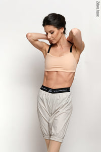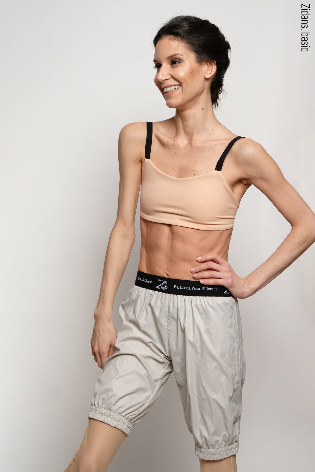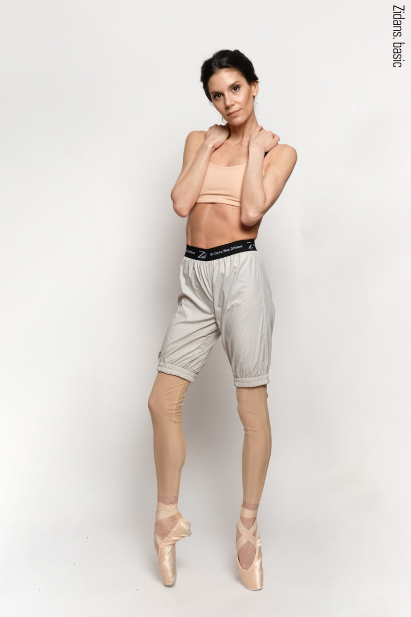 Design. Beige ballet sauna shorts with heat retention effect. Soft branded elastic band on the waist and comfortable elasticated leg cuffs to create a "sauna" effect for a productive warm-up. Low waistline.