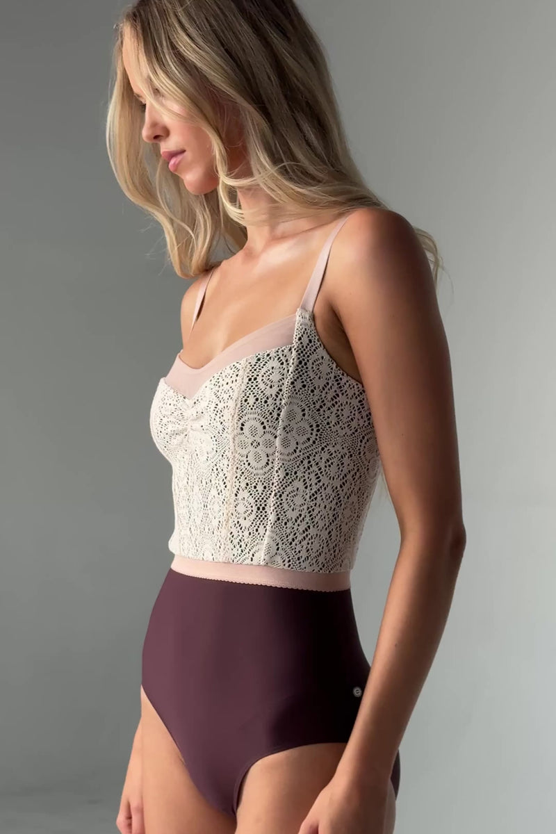 OPHELIA camisole leotard returns with a limited edition, vintage-inspired crochet bodice for a touch of nostalgic, bohemian styling in the studio or where ever your day takes you.