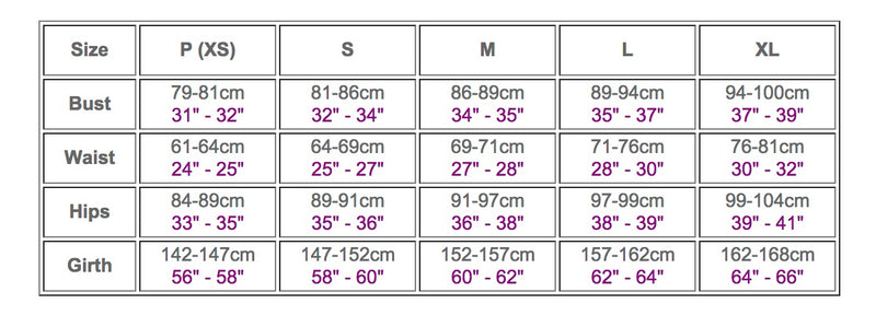 但し、グリシコのサイズ表にはガースがないため、スリーサイズを基準にお選びください。